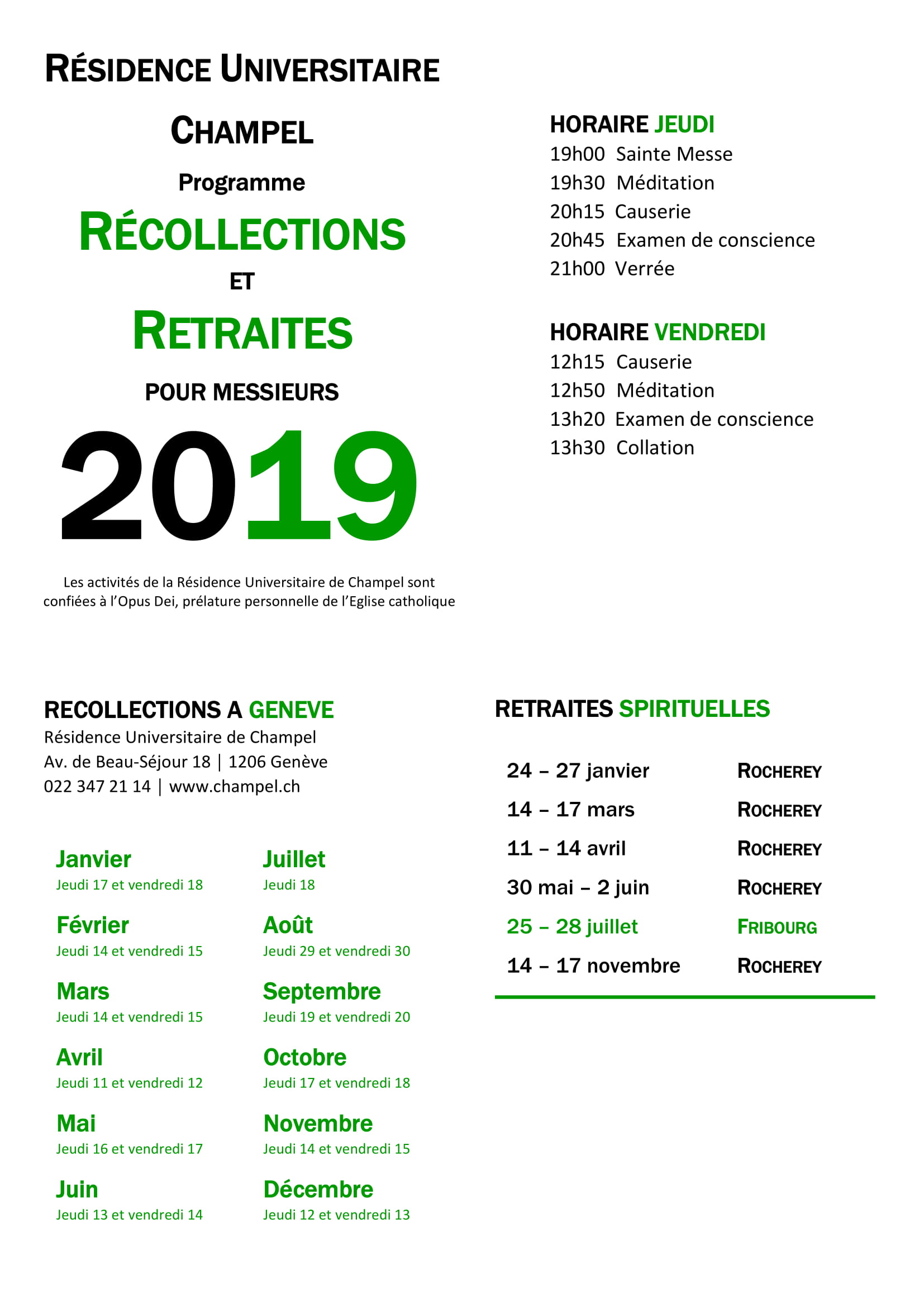 Le centre de formation offre des formations chrétienne selon l’esprit et la spiritualité de l’Opus Dei. L’Opus Dei est une institution de l’Eglise catholique qui prône la sainteté de la vie ordinaire, notamment à travers le travail professionel. Josémaria Escrivá l’a fondé en 1928. Le centre de formation organise des conférences, des séminaires d’étude ainsi que des retraites et des soirées de prière.